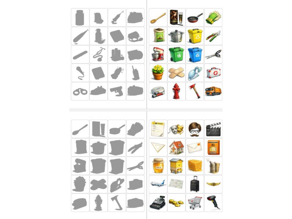 - samostatné kartičky s pracovními pomůckami