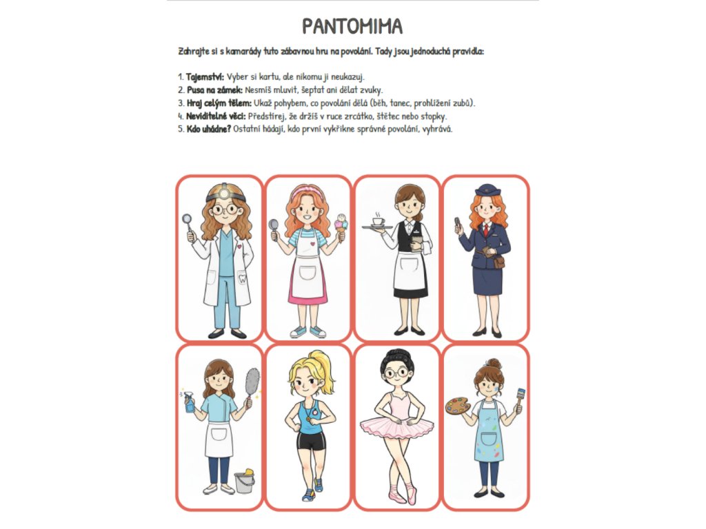 - pantomimu s pravidly hry
