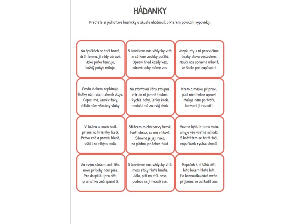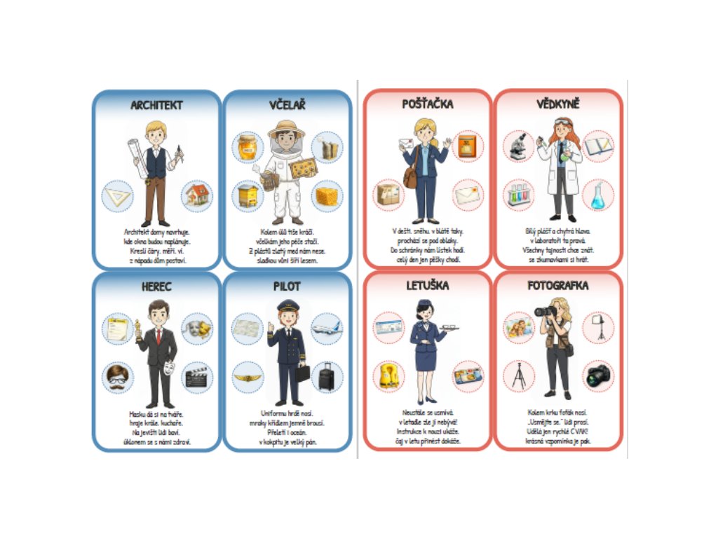 - karty povolání s ilustrací a básničkou